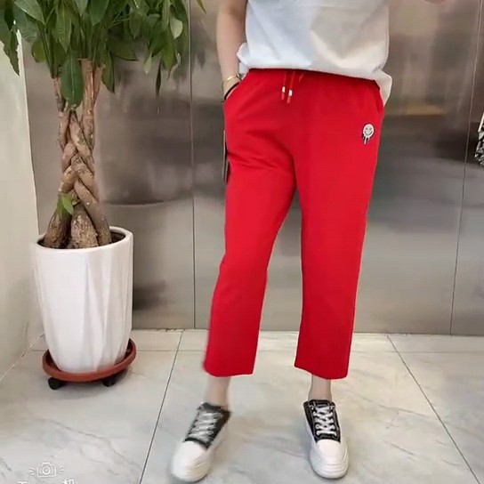 2021新款夏款加肥加大女裤松紧高腰力舒适百搭刺绣笑脸图标卫裤热门设计联盟服务商