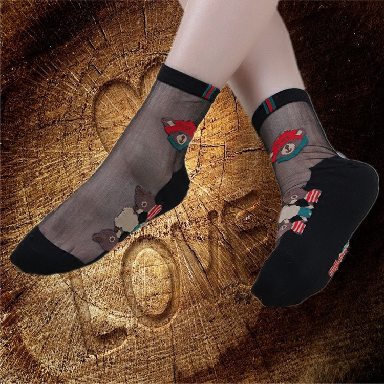 袜子女卡通三只小熊棉底丝袜透肉黑色水晶丝袜薄款透明玻璃丝潮袜热门设计联盟服务商