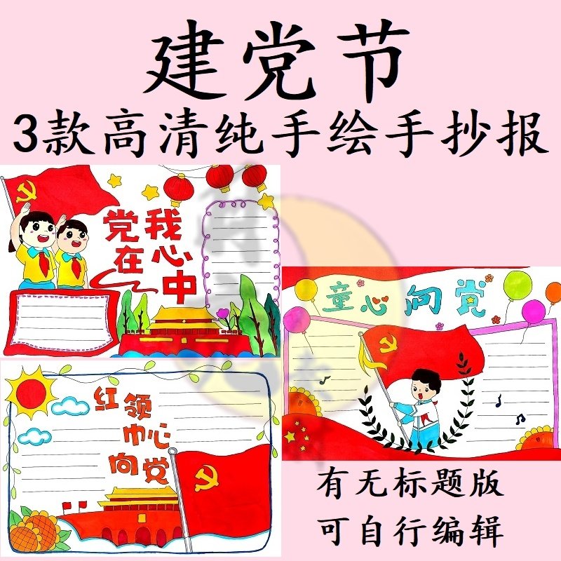 童心向党手绘建党节红领巾心向党小报党在我心中手抄报模板电子版热门设计联盟服务商